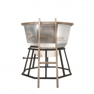 Банный чан на подставке изготовлен из пищевой стали. Представляет собой большую ёмкость в виде чаши, при нагревании которой можно париться на свежем воздухе. Чан установлен на устойчивую металлическую подставку и оборудован кедровым бортом, скамейками, подспинниками, трапом для ног и приставной лестницей. Нагревание банного чана происходит от обычного костра. Если оборудовать данную модель печью, то банные процедуры можно принимать даже зимой.