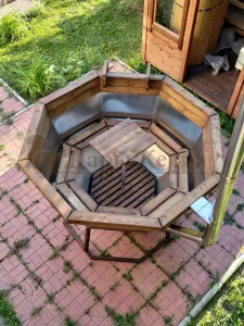 Банный чан из нержавеющей стали Ø-2000 на подставке с приварной печью с водяной рубашкой