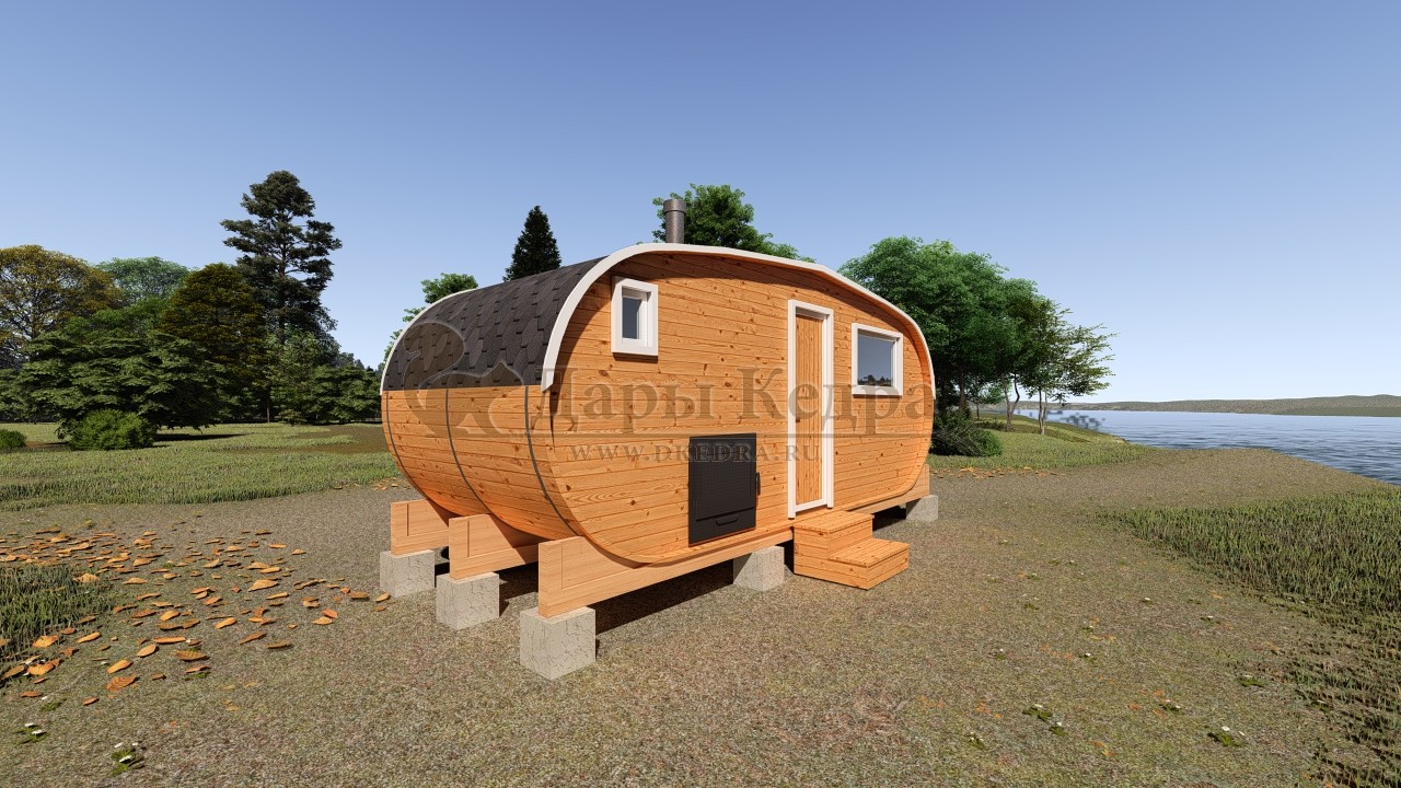 Мобильная баня-бочка с каждым днем набирает все большую популярность благодаря её возможной транспортировки куда угодно: на отдых в лесу, на рыбалку или на побережье реки