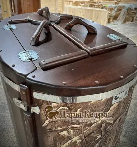 КЕДРОВАЯ БОЧКА С ХУДОЖЕСТВЕННЫМ ОФОРМЛЕНИЕМ