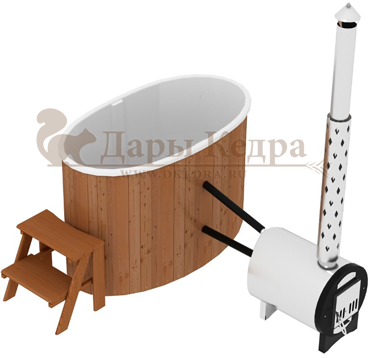 • Финская овальная композитная купель с подогревом (с печкой) «НОТА 79 с печью 25 квт» Это уличная подогреваемая купель с овальной внутренней чашей, которая изготовлена из современного прочного и термоустойчивого материала (композита). Форма чаши обеспечивает комфортную посадку во время принятия процедур. Для удобства пользования купель оборудована приставной лестницей. Подогрев воды осуществляется внешней печью с дымоходом. Композитная вставка придает купели красивый внешний вид, продлевает срок службы и облегчает уход за изделием. Парение на свежем воздухе – это отличный способ укрепить здоровье и поддержать организм в тонусе.
