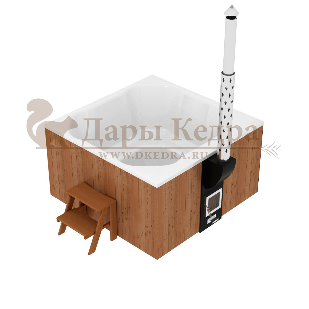• Финская квадратная композитная купель с подогревом (с интегрированной печкой) «кварта интегра 200» Это уличная подогреваемая купель с квадратной внутренней чашей, которая изготовлена из современного прочного и термоустойчивого материала (композита). Форма чаши обеспечивает комфортную посадку во время принятия процедур. Для удобства пользования купель фурако оборудована приставной лестницей. Нагрев воды происходит за счет интегрированной печи, которая встроена под чашу. Композитная вставка придает купели красивый внешний вид, продлевает срок службы и облегчает уход за изделием. Парение на свежем воздухе – это отличный способ укрепить здоровье и поддержать организм в тонусе.