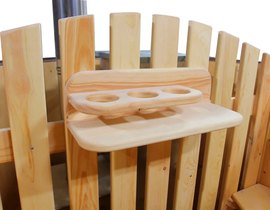 Боковой подиум, шикарное дополнение, позволяющее не только подняться в купель, но и положить вещи, что-то поставить и даже присесть.