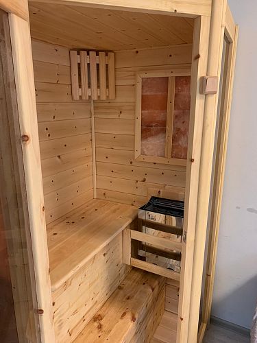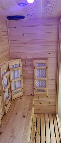 Домой заказала себе такую сауну, очень хорошо греет, внешний вид достойный, благородный, рекомендую! И, кстати, пахнет кедром потрясающе!