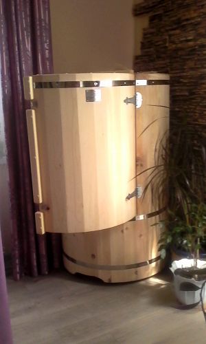 Покупали такой комплект для дачи, установили в комнате отдыха в бане. Удобно очень, когда народу много в семье и все хотят попариться. Дети, кстати, предпочитают больше греться в бочке, чем в парной бани.
